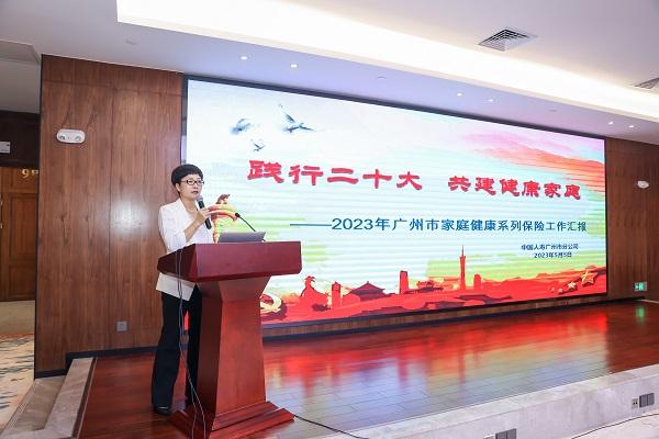 會議由國壽廣州市分公司黨委委員、副總經(jīng)理施偉聰致辭,國壽廣州市分公司團(tuán)體業(yè)務(wù)部經(jīng)理楊秀琴作計生保險工作報告。
