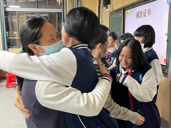 最后,孩子們非常自豪地為家長頒發(fā)證書,并給了彼此深深的擁抱。在家庭教育中,身教重于言傳,孩子為家長頒發(fā)證書,也是對孩子的一次潛移默化的教育。