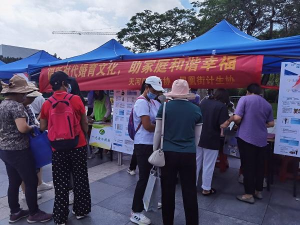 5月26日上午,天河區(qū)計生協(xié)聯(lián)合鳳凰街計生協(xié)、中國人壽保險公司、固生堂醫(yī)療門診部在火爐山廣場共同舉辦以“倡新時代婚育文化 助家庭和諧幸?!睘橹黝}的“5.29會員活動日”宣傳服務活動。天河區(qū)衛(wèi)健局副局長謝文強、鳳凰街分管計生協(xié)相關領導出席當天活動。