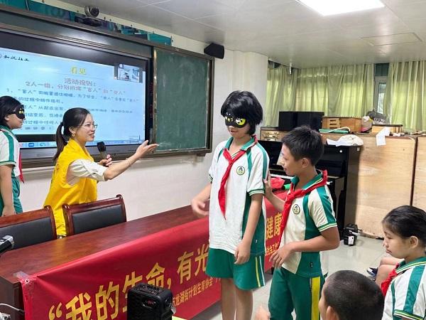一位湯姓同學(xué)搶著發(fā)言:“在這次講座上模擬盲人、啞巴、聾子,感受到殘障人生活的困難。如果我遇到殘疾人會更加積極地幫助他們,也會更加珍惜生命、尊重生命、呵護(hù)生命?!?