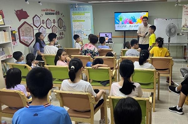 ??7月17日下午,越秀區(qū)大塘街計生協(xié)、公衛(wèi)委聯(lián)合區(qū)未成年人保護中心和街道團工委、少工委、雙百工程社工站、未成年人保護工作站,在大塘街社工站舉辦“陽光護航·齊心守護——從認識到行動,青少年心理危機識別與預防”兒童心理健康講堂活動。本次活動由社工師、團體心理咨詢師李斌老師為社區(qū)困境兒童、社區(qū)青少年進行心理健康授課。