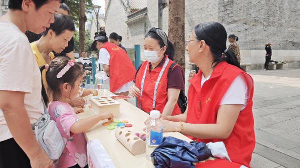 健康義診區(qū)和托育咨詢區(qū)熱鬧非凡。梅花村街社區(qū)衛(wèi)生服務(wù)中心醫(yī)生們?yōu)閶胗變禾峁┝藢I(yè)的保健義診服務(wù),同時(shí)工作人員也為家長(zhǎng)們提供了嬰幼兒早期教育照護(hù)和成長(zhǎng)指導(dǎo)咨詢。家長(zhǎng)們認(rèn)真聆聽,積極交流。