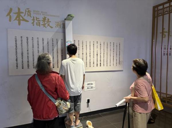 在頂樓針灸館和養(yǎng)生館,大家體驗(yàn)體脂檢測,學(xué)習(xí)“望、聞、問、切”四診方法,比對(duì)自身舌象與體質(zhì)。熱衷養(yǎng)生的呂姨帶著同伴觀看穴位模型,講解不同穴位的保健功效。