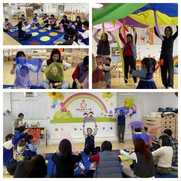隨后的音樂游戲環(huán)節(jié)精彩紛呈:《紗巾舞動》中,孩子們手持彩巾隨樂起舞,光影流轉(zhuǎn)間盡顯童真;《大風(fēng)起》游戲里,親子間追逐躲藏,笑聲不斷,默契與信任悄然滋長;《彩燈高掛》環(huán)節(jié),孩子們穿梭奔跑,家長合力舞動彩傘,構(gòu)成一幅流動的光影畫卷,現(xiàn)場溫馨而熱鬧。