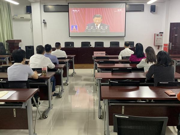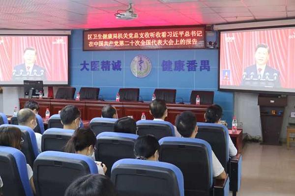 ▲番禺區(qū)計生協(xié)全體黨員干部在區(qū)衛(wèi)生健康局觀看黨的二十大開幕會