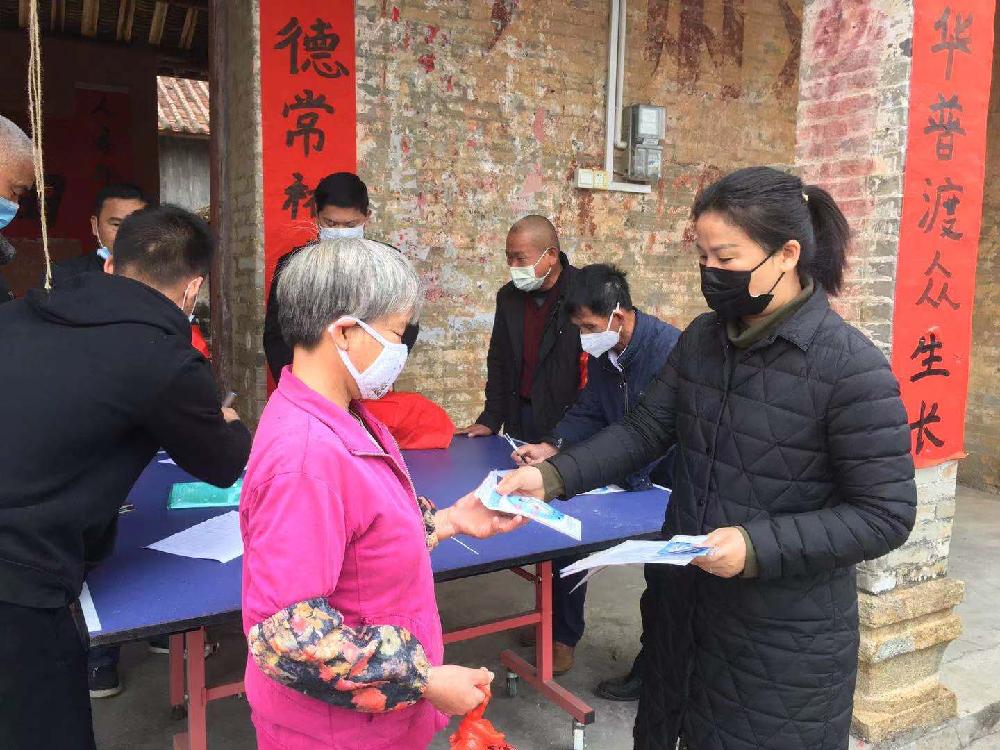 圖3 鎮(zhèn)、村計生協(xié)工作人員走街串巷、深入農(nóng)戶派發(fā)疫情防控宣傳單張,向群眾宣傳新型冠狀病毒傳播途徑及如何預(yù)防病毒感染,