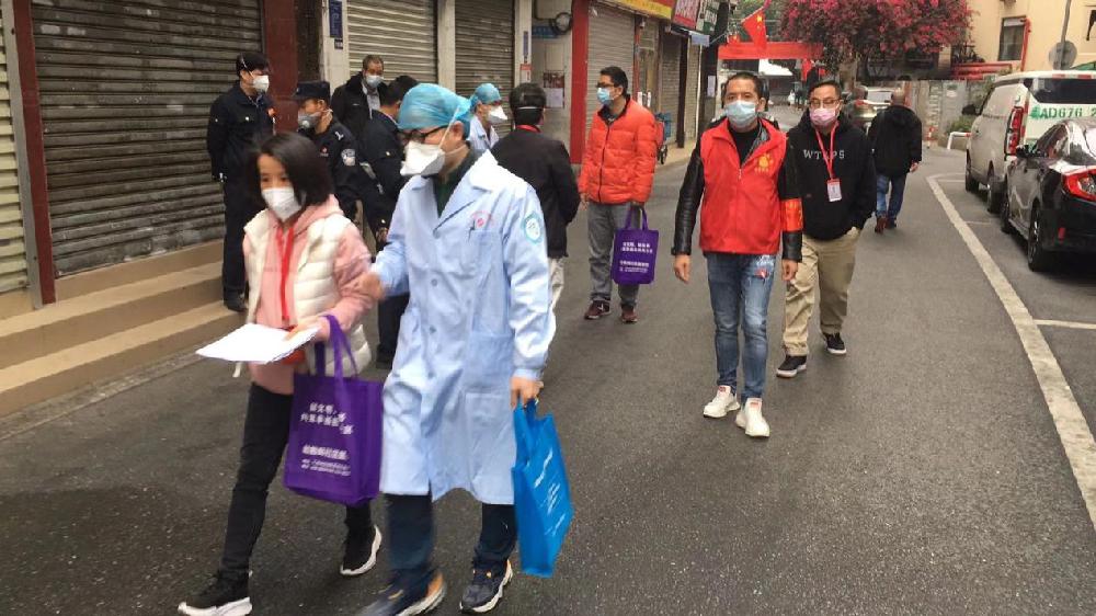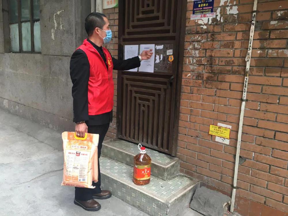 △圖4.白云區(qū)計(jì)生協(xié)組織志愿者上門為留觀人員送防護(hù)和生活用品。