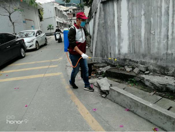 【周偉禮背著藥箱在村里背街窄巷消殺】