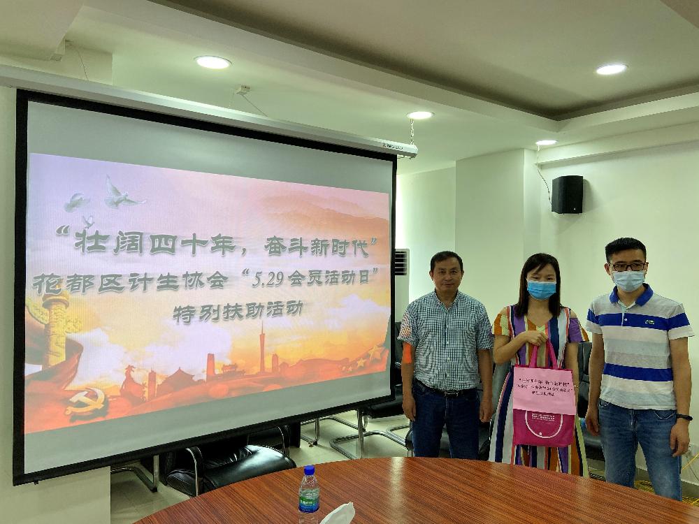 圖為:花都區(qū)計(jì)生協(xié)和花東鎮(zhèn)計(jì)生協(xié)為患重大疾病計(jì)生困難家庭送上特別扶助慰問金和慰問品