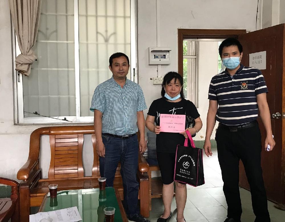 圖為:花都區(qū)計(jì)生協(xié)和秀全街計(jì)生協(xié)為患重大疾病基層計(jì)生工作者送上特別扶助慰問金和慰問品