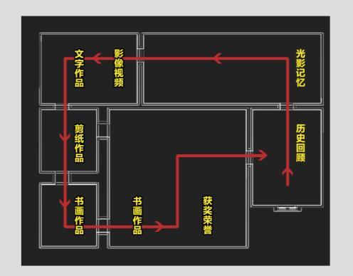 1.可按照第一個(gè)展廳中的“展覽導(dǎo)覽圖”進(jìn)行游覽。