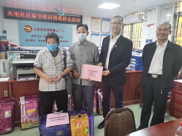 ??座談會后,慰問組一行在黃埔街為82歲的老黨員徐名塵老人送上由幸福工程廣州市組委會頒發(fā)的獎牌。黃烜煜介紹了徐老先生為“幸福工程”慷慨捐款1.9萬元的優(yōu)秀事跡,號召大家向徐名塵老人學(xué)習(xí),為救助困境母親奉獻自己的一份愛心。周政平也表達了對徐老的敬意,為徐老送上新春的祝福及慰問品。