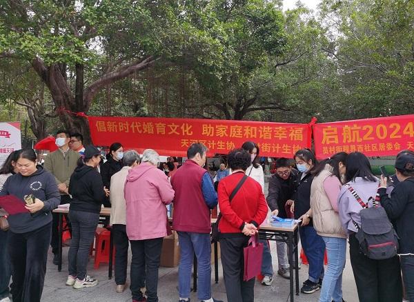 11日上午,以“倡新時代婚育新風(fēng) 助家庭和諧幸?!睘橹黝}的婚育文化宣傳服務(wù)活動在天河區(qū)員村街臨江大道親水平臺舉辦?;顒佑商旌訁^(qū)衛(wèi)生健康局、區(qū)計生協(xié)、區(qū)農(nóng)業(yè)農(nóng)村局,員村街道辦事處、街計生協(xié)、街公共衛(wèi)生委員會、街社區(qū)衛(wèi)生服務(wù)中心聯(lián)合舉辦。區(qū)衛(wèi)生健康局副局長謝文強(qiáng)、區(qū)計生協(xié)四級調(diào)研員肖鐵、員村街武裝部部長陳興亮、公服辦主任田露參加活動。