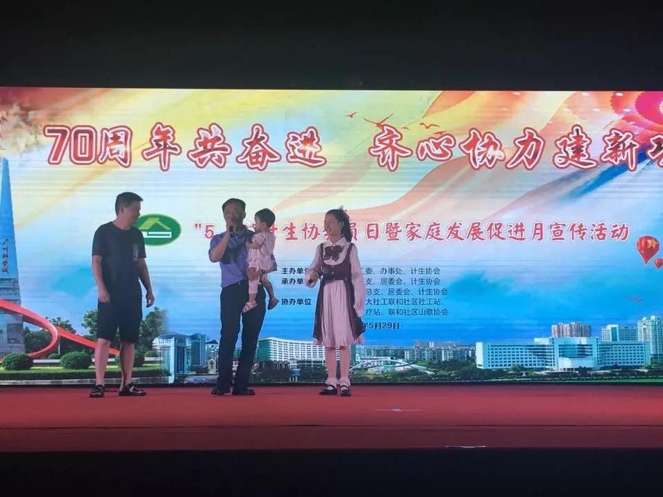 (二)開展主題文藝演出活動。聯(lián)和街在聯(lián)和社區(qū)山下籃球場舉辦以“70周年共奮進 齊心協(xié)力建新功”為主題的“5.29”文藝晚會,選取民族舞蹈、獨唱、街舞、客家山歌等13個精彩的居民自排自創(chuàng)的品牌節(jié)目讓社區(qū)居民參與其中與民同樂,其街道黨工委黎書記還給晚會熱演了一場“一孩不夠 二孩剛好”的情景劇,親力親為宣傳計生政策法規(guī),引得居民群眾掌聲陣陣,個個豎起大拇指為黎書記點贊。長洲街道則于2019年5月21日(農(nóng)歷4月17日,民間送子金花誕日)在長洲金花古屆舉辦了《長洲街計生協(xié)會會員日暨第十一屆長洲“金花誕”民俗文化活動》,來自長洲老年人大學、黃埔衛(wèi)校、駐街企業(yè)計生協(xié)會多家社會團隊,充分利用相聲、小品、詩朗誦等藝術(shù)表演形式助陣,形式多樣傳播新型生育文化。