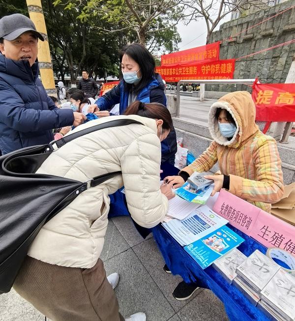 1月26日上午,天河區(qū)林和街計生協(xié)、街道公共衛(wèi)生委員會聯(lián)合社區(qū)衛(wèi)生服務中心在廣州東站飄絹廣場舉辦以“倡新時代婚育文化,助家庭和諧幸?!睘橹黝}的婚育文化宣傳服務活動。