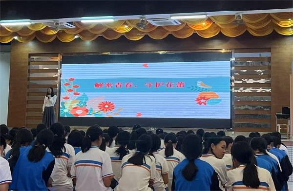 ??5月12日下午,番禺區(qū)計(jì)生協(xié)、市橋街計(jì)生協(xié)、街道公共衛(wèi)生委員會(huì)聯(lián)合市橋橋城中學(xué),成功舉辦了“解密青春,守護(hù)花蕾”主題宣傳活動(dòng)。此次活動(dòng)通過豐富多元的內(nèi)容,為女生們揭開青春期的神秘面紗,助力她們健康成長。