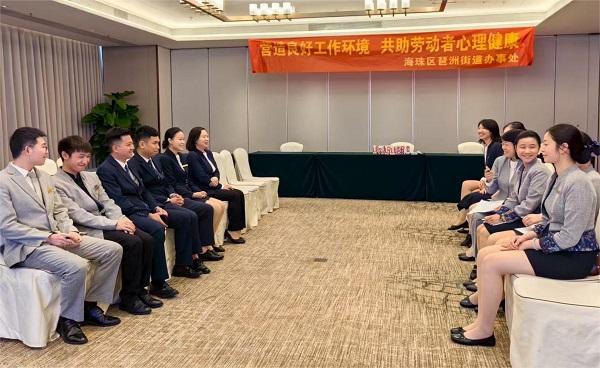 近日,由廣州市計(jì)生協(xié)、海珠區(qū)計(jì)生協(xié)和琶洲街計(jì)生協(xié)、公衛(wèi)委、文化站聯(lián)合廣東省外語(yǔ)藝術(shù)職業(yè)學(xué)院共同策劃的“我青春,我健康”青春健康教育進(jìn)企業(yè)活動(dòng),在廣州交投發(fā)展有限公司琶洲嶺南東方酒店成功舉辦?;顒?dòng)聚焦酒店服務(wù)行業(yè)特性,特邀廣東外語(yǔ)藝術(shù)職業(yè)學(xué)院劉國(guó)萍老師,圍繞“酒店服務(wù)中的人際交往與社交安全”這一主題,為企業(yè)員工帶來(lái)了一堂實(shí)用生動(dòng)的職業(yè)健康防護(hù)課程。