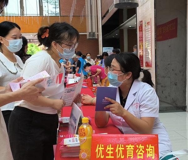 區(qū)婦幼保健院醫(yī)務(wù)人員通過設(shè)立義診咨詢臺(tái)、健康教育等方式,為群眾提供出生缺陷防控、孕前優(yōu)生、產(chǎn)前篩查、兒童保健等“一條龍”咨詢指導(dǎo),向社區(qū)居民宣傳地貧防控、優(yōu)生優(yōu)育、婚檢和孕檢、產(chǎn)前篩查等相關(guān)知識(shí)。