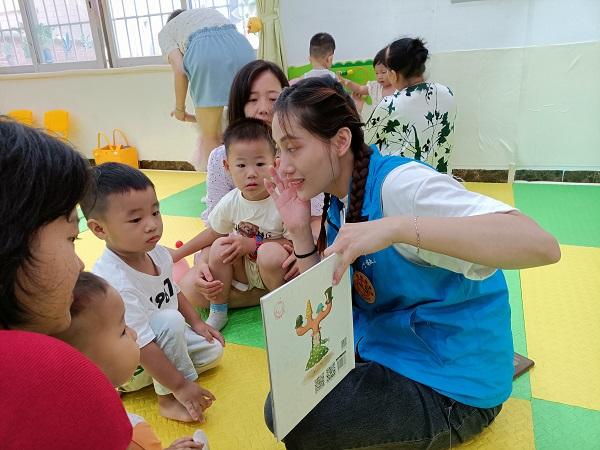 ▲15分鐘的破冰游戲結(jié)束后, 小朋友在親子指導(dǎo)員的帶領(lǐng)下馬上投入到聽繪本故事當(dāng)中。