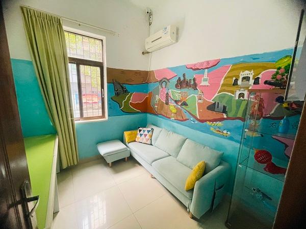 室內(nèi)面積約70平方,這是開展服務(wù)和孩子們游戲的主陣地,可同時(shí)容納10戶親子家庭?,F(xiàn)有墻面玩具、閱讀區(qū)、活動(dòng)區(qū)和道具存放區(qū),孩子們天生好奇、對(duì)未知的事物總是很有探索的欲望,在這里,家長可以通過書籍來拓寬孩子的視野,通過親子課堂、親子活動(dòng)增加父母與孩子溝通的機(jī)會(huì)。