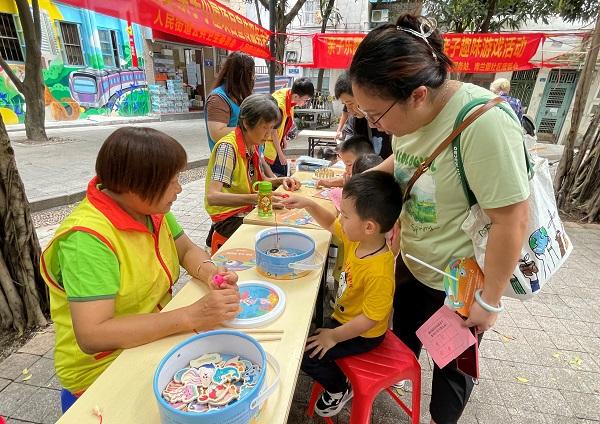 活動(dòng)現(xiàn)場(chǎng)最熱鬧、最歡樂(lè)的區(qū)域非早教互動(dòng)游戲攤位莫屬。孩子們圍著游戲道具,興高采烈地?fù)v鼓著,在家長(zhǎng)和社工的協(xié)助下順利完成游戲。游戲種類(lèi)多種多樣,其中“早教手抓板游戲”“釣魚(yú)游戲”和“拼圖游戲”深受孩子們的喜愛(ài)。在志愿者的引導(dǎo)下,家長(zhǎng)和孩子們協(xié)同合作,一起參與親子游戲,現(xiàn)場(chǎng)歡樂(lè)不斷。