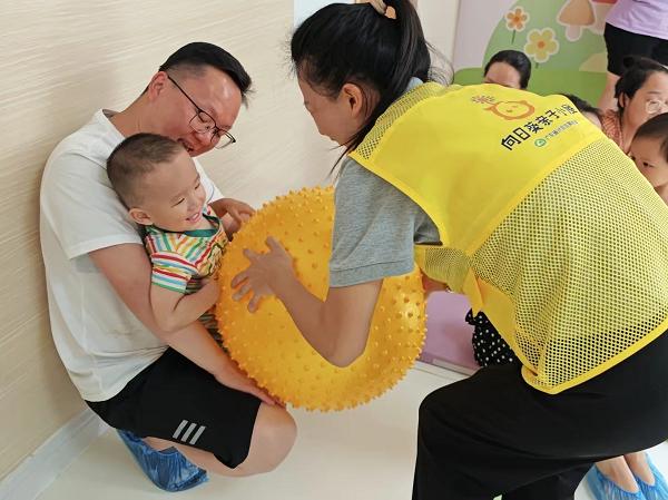 活動(dòng)現(xiàn)場(chǎng),“向日葵親子小屋”親子指導(dǎo)員帶領(lǐng)小寶貝和家長(zhǎng)唱Hello歌問(wèn)好,帶領(lǐng)小寶貝們隨著音樂(lè)律動(dòng)舞動(dòng)小手小腳,消除緊張情緒,引導(dǎo)小寶貝們唱名字,讓他們?nèi)谌爰w,認(rèn)識(shí)新朋友。通過(guò)穿珠子、插吸管等精細(xì)動(dòng)作小游戲,鍛煉小寶貝們的雙手配合及手眼協(xié)調(diào)能力?,F(xiàn)場(chǎng)還邀請(qǐng)家長(zhǎng)們參與活動(dòng),保持跟寶貝的互動(dòng),開(kāi)展親子共育的理念、嬰幼兒照護(hù)知識(shí)和技能等指導(dǎo),分享交流育兒經(jīng)驗(yàn)。