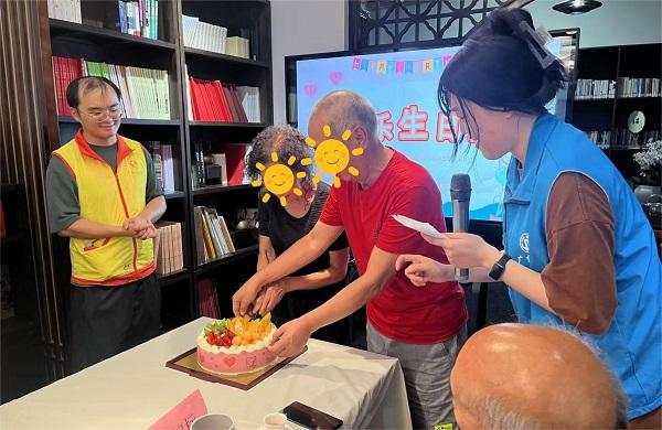 當(dāng)天生日的長(zhǎng)者作為壽星代表上臺(tái)切蛋糕,大家互道生日祝福、共唱生日歌、共品生日蛋糕,每一位參與者都感受到了快樂(lè)及社區(qū)大家庭的溫暖。