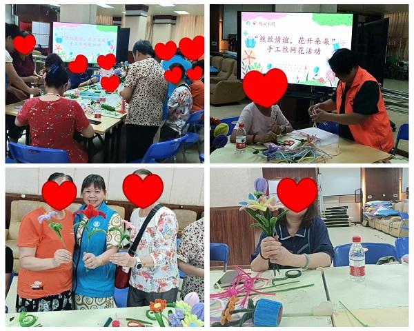 活動還設計了創(chuàng)意環(huán)節(jié),通過提供一些設計靈感,以及展示不同的絲網花成品,鼓勵計生特殊家庭成員發(fā)揮自己的想象力,自由創(chuàng)作不同顏色和形狀的絲網花。