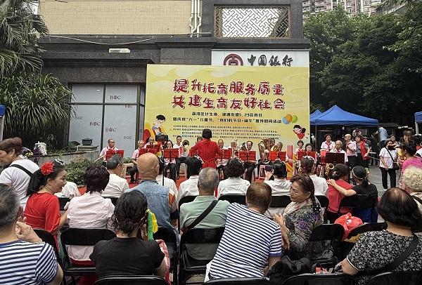 活動(dòng)伊始,戶外展演區(qū)節(jié)目精彩,管樂(lè)隊(duì)、舞蹈隊(duì)、合唱團(tuán)等帶來(lái)經(jīng)典曲目、舞蹈等表演,展現(xiàn)藝術(shù)與地域文化魅力。