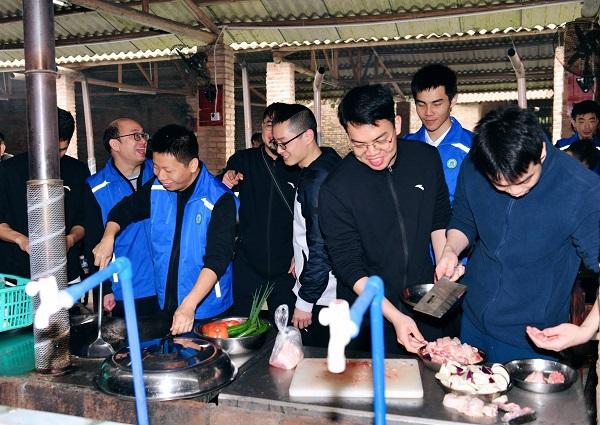 在專業(yè)教官指導(dǎo)下,活動(dòng)在分組熱身后開始了“同心擊鼓”“旱地冰壺”“廚藝展示”等趣味競技,歡聲笑語彌漫現(xiàn)場?;顒?dòng)還設(shè)有野炊廚藝大比拼,通過團(tuán)隊(duì)合作,各小組需自行完成食材準(zhǔn)備、烹飪和餐具清洗等工作,展示烹飪技藝和團(tuán)隊(duì)協(xié)作能力。