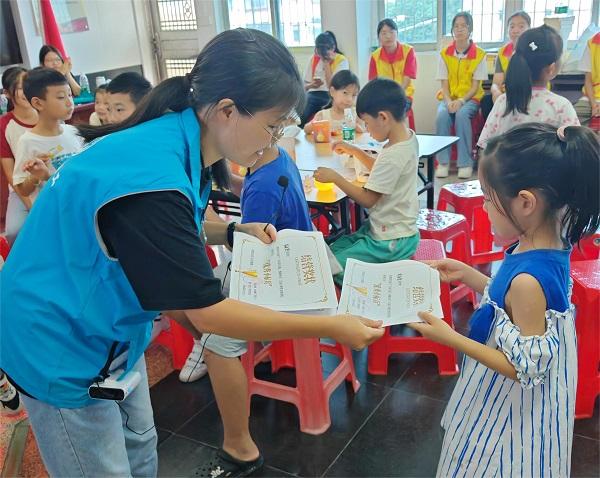 在夏令營的尾聲,孩子們圍坐一圈,共同回顧了這段時間的點點滴滴,分享自己的成長與變化,表達了對來穗“小候鳥”暑期夏令營活動的不舍與感激。志愿者為表現(xiàn)突出的孩子們頒發(fā)了獎狀,以表彰他們在活動中的出色表現(xiàn)。