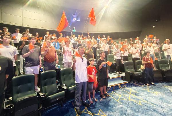 活動(dòng)的最后,全體人員起立,齊聲高唱《沒有共產(chǎn)黨就沒有新中國》。激昂的歌聲回蕩在整個(gè)影院,將現(xiàn)場氛圍推向高潮,充分展現(xiàn)了流動(dòng)人口群體團(tuán)結(jié)一心、積極向上的精神風(fēng)貌。