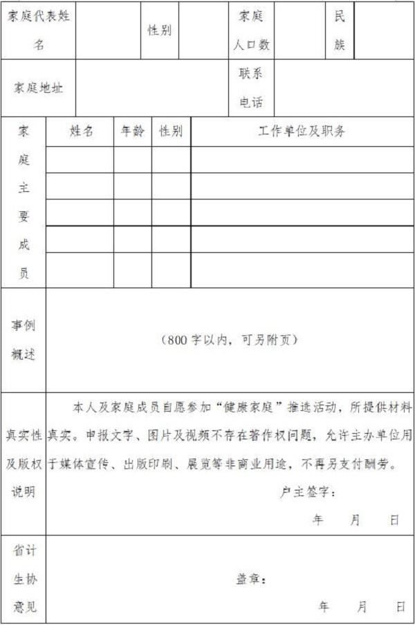 健康家庭優(yōu)秀案例推薦表